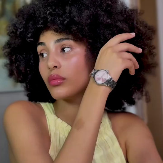 Acier inoxydable, verre saphir et finitions soignées.