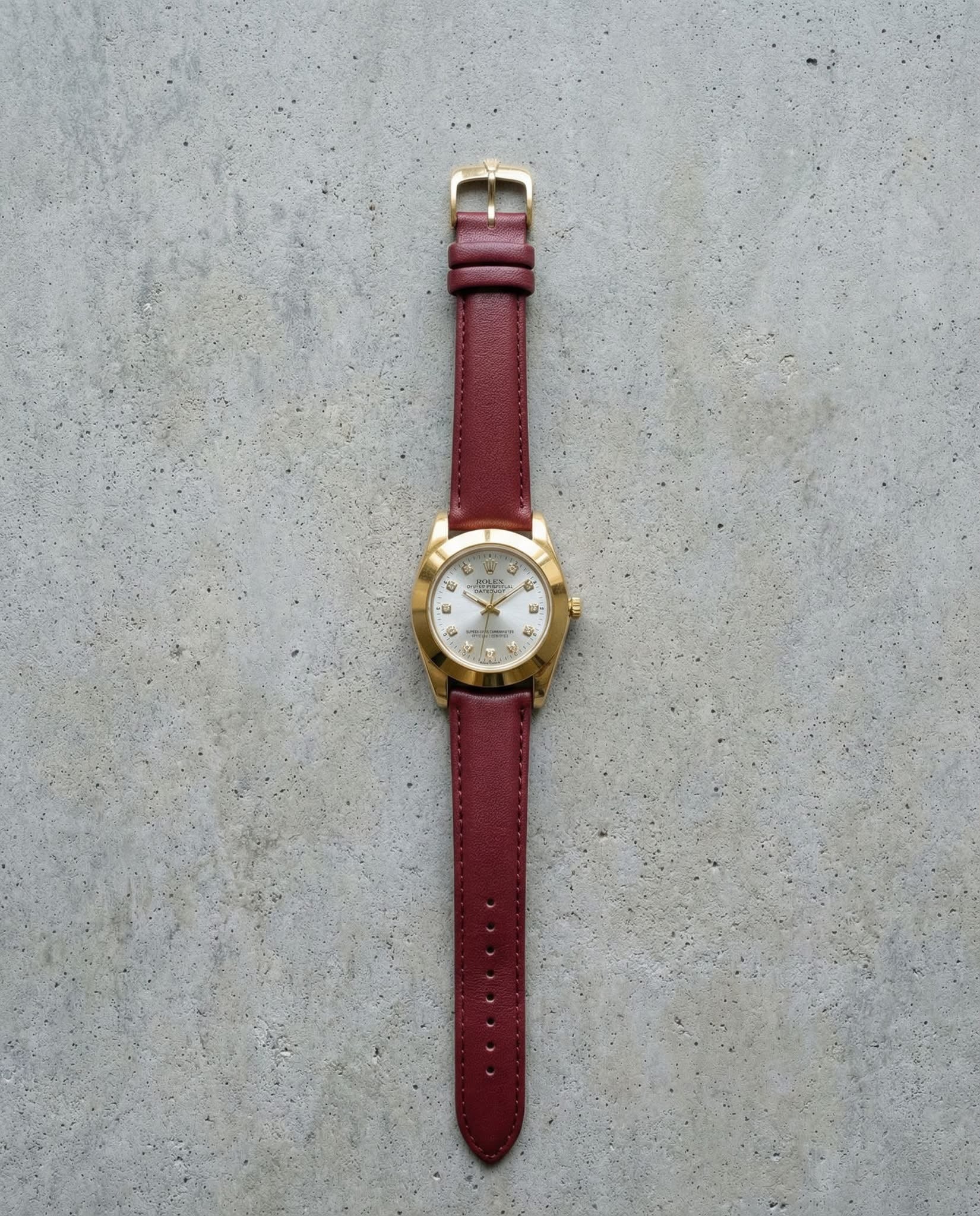 Montre élégante avec boîtier doré & bracelet bordeaux… simple, chic
